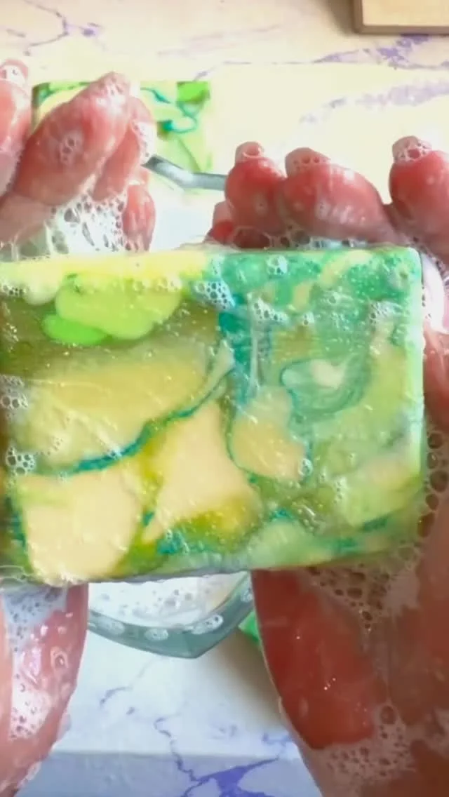 This silky blue marble cold process soap was made with natural indigo, tussah silk, cane sugar, and coconut milk—and the color stayed vibrant! Coconut Milk adds moisture & a fluffy lather, cane sugar boosts soap bubbles and tussah silk adds slip and silkiness for an elegant feel on the skin.